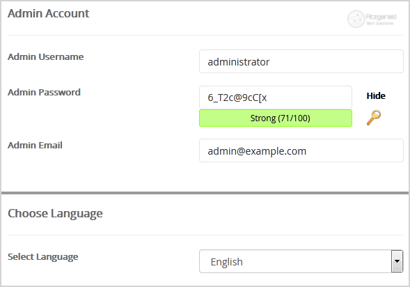 • Admin Email: Your e-mail address.