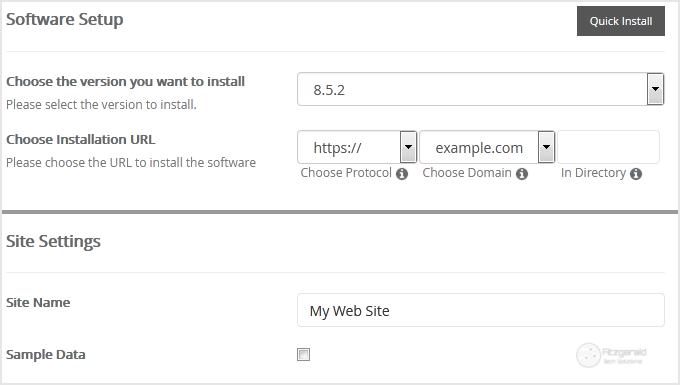 - Admin Username: Your new Concrete5 username (for security reason do not use the Administrator or the Admin username.)