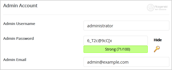 - Admin Username: Your new PopojiCMS username (for security reason do not use the Administrator or the Admin username.)